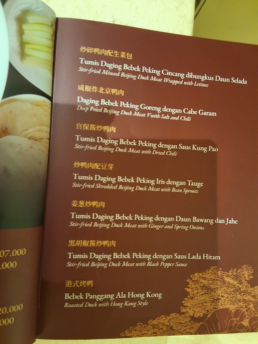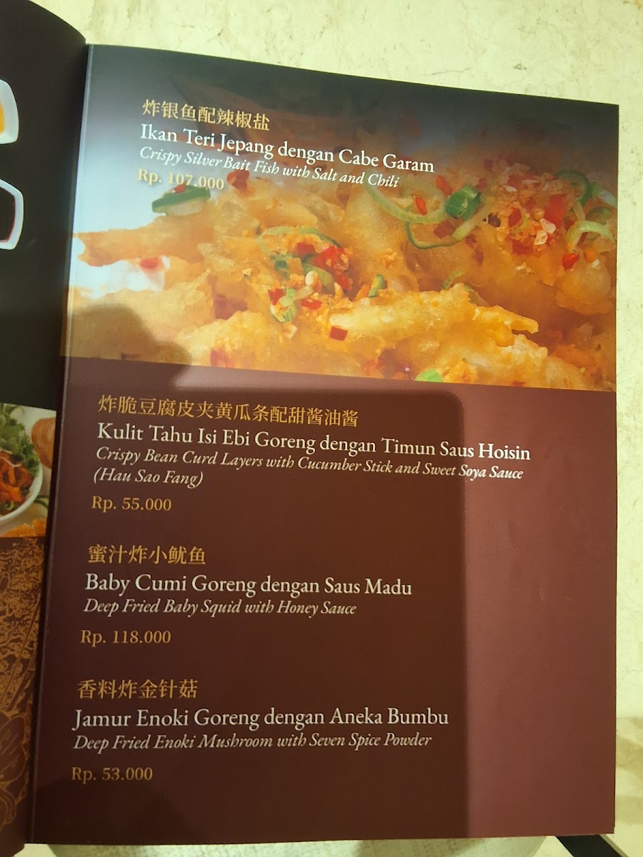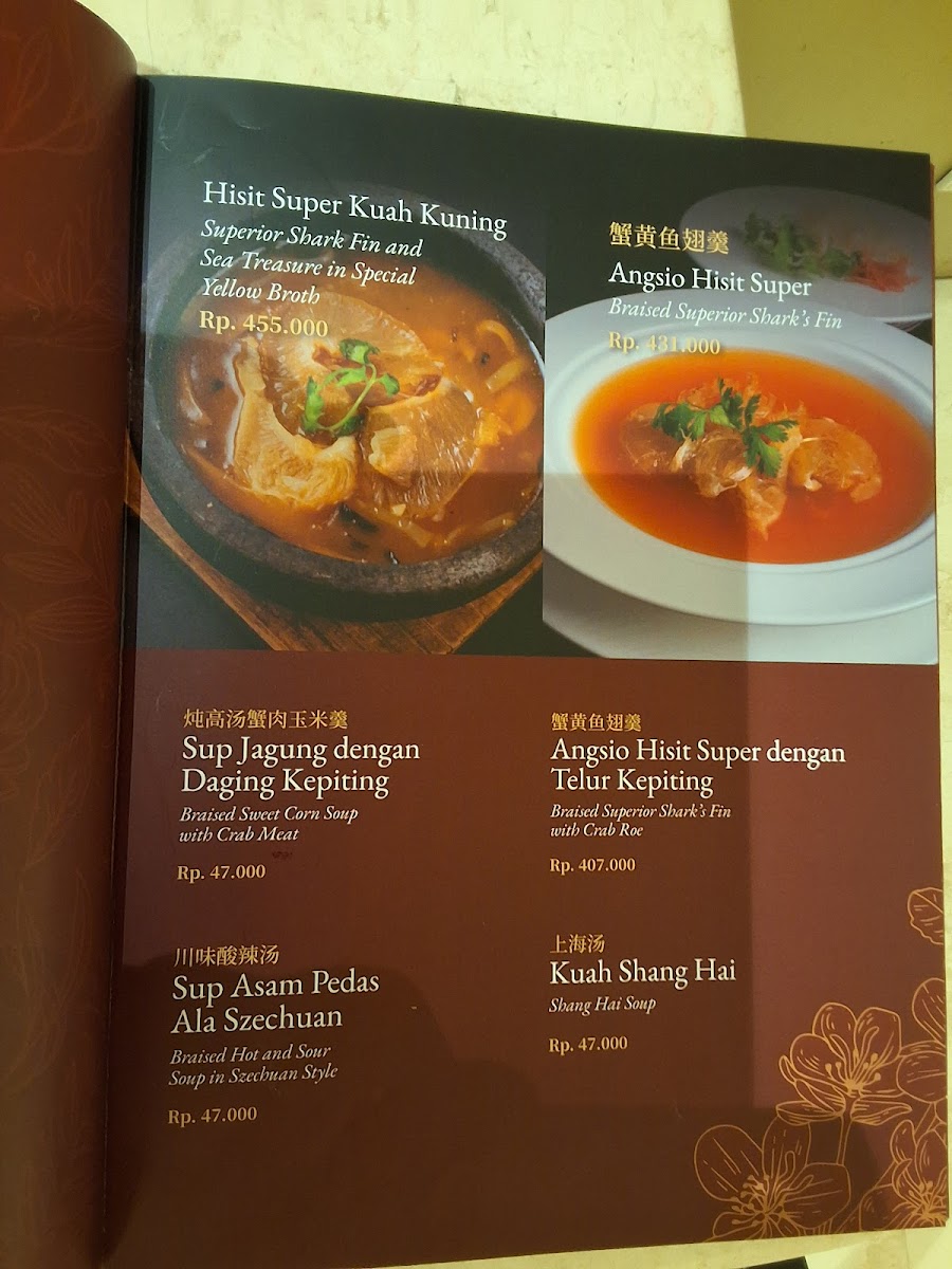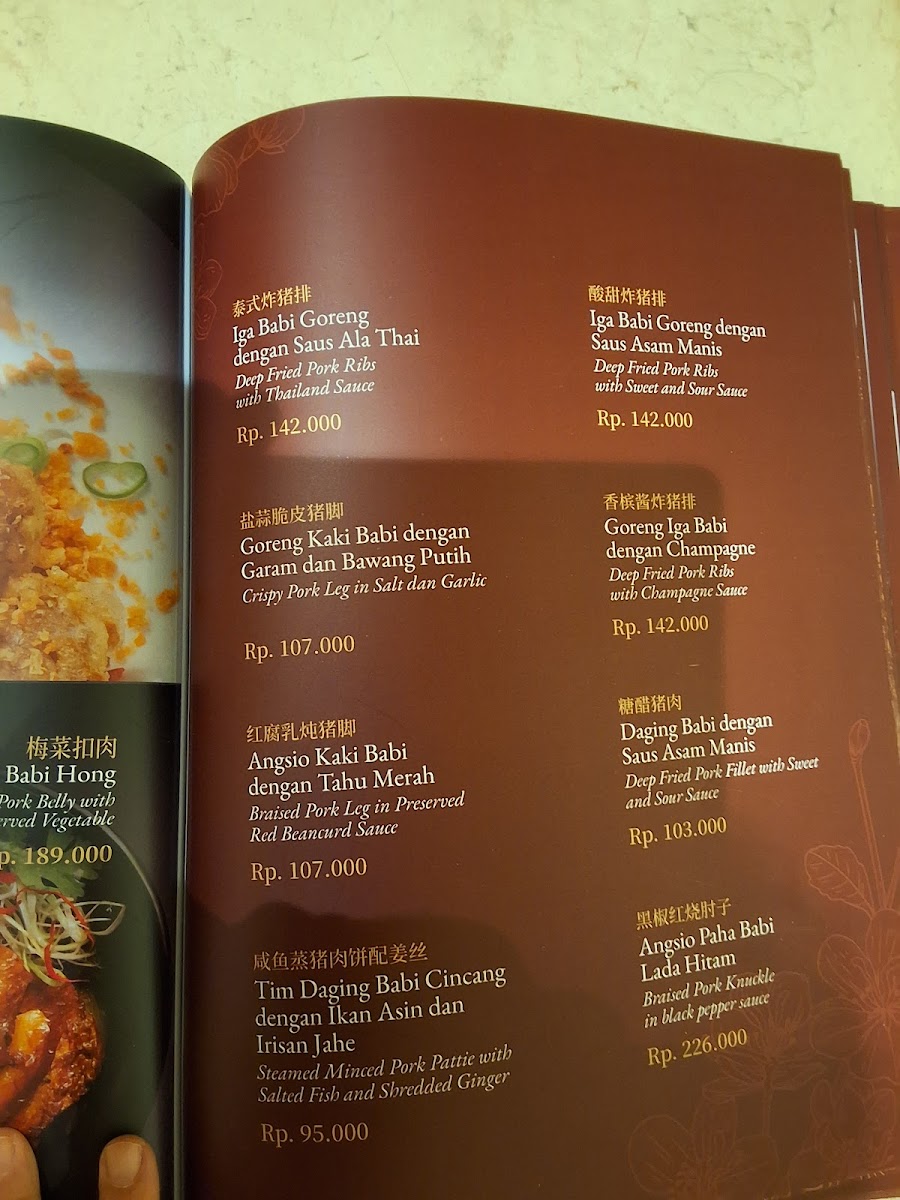 Ming Yuan offers a delightful menu that combines traditional flavors with a modern twist, making it a standout choice in Semarang. The menu features a variety of options that cater to all tastes, but a few dishes truly shine. Tim Kulit Tahu Saus Tiram is a crispy, savory appetizer that blends tofu skin with a rich oyster sauce, while the Suckling Pig Combination offers a delectable variety of roasted meats. For dim sum lovers, the Pao and Dimsum are must-tries, with the dumplings bursting with flavor and texture. The Cheongfan Udang, shrimp-filled rice rolls, is another standout, offering a perfect balance of delicate flavors. For those seeking a unique dessert, the Ronde Almond and Tan Tart are delightful choices, providing a sweet and satisfying finish. The Bubur Ayam Dan Telur Phitan, a comforting chicken and preserved egg porridge, is perfect for a warming meal, while the 蘿蔔糕 (Turnip Cake) offers a deliciously savory alternative. For lighter options, the Chicken Soup with Corn and the refreshing Es Campur provide a satisfying yet light meal. The Fish Filled and Century Egg with Spring brings a flavorful mix of textures, and the Tahu Dengan Sapi Cincang combines tofu and minced beef in a savory dish. Lastly, the Samcan Goreng offers a perfectly crispy and tender pork belly dish that adds to the restaurant’s diverse menu. Ming Yuan’s combination of traditional and contemporary flavors makes it an excellent choice for anyone looking for an authentic, high-quality dining experience.